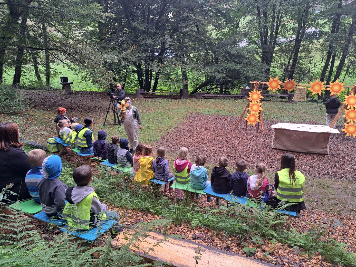 Voden ogled novih ureditev je novinarjem, partnerjem in ostalim zbranim omogočil boljši vpogled v projekt. Med drugim so predstavili nove ureditve, ki so nastale v okviru projekta: gledališče v gozdu, gozdno knjižnico, čutno gozdno pot, geološki stolpec, energijski krog, učni čebelnjak in lesena gibalna igrala.