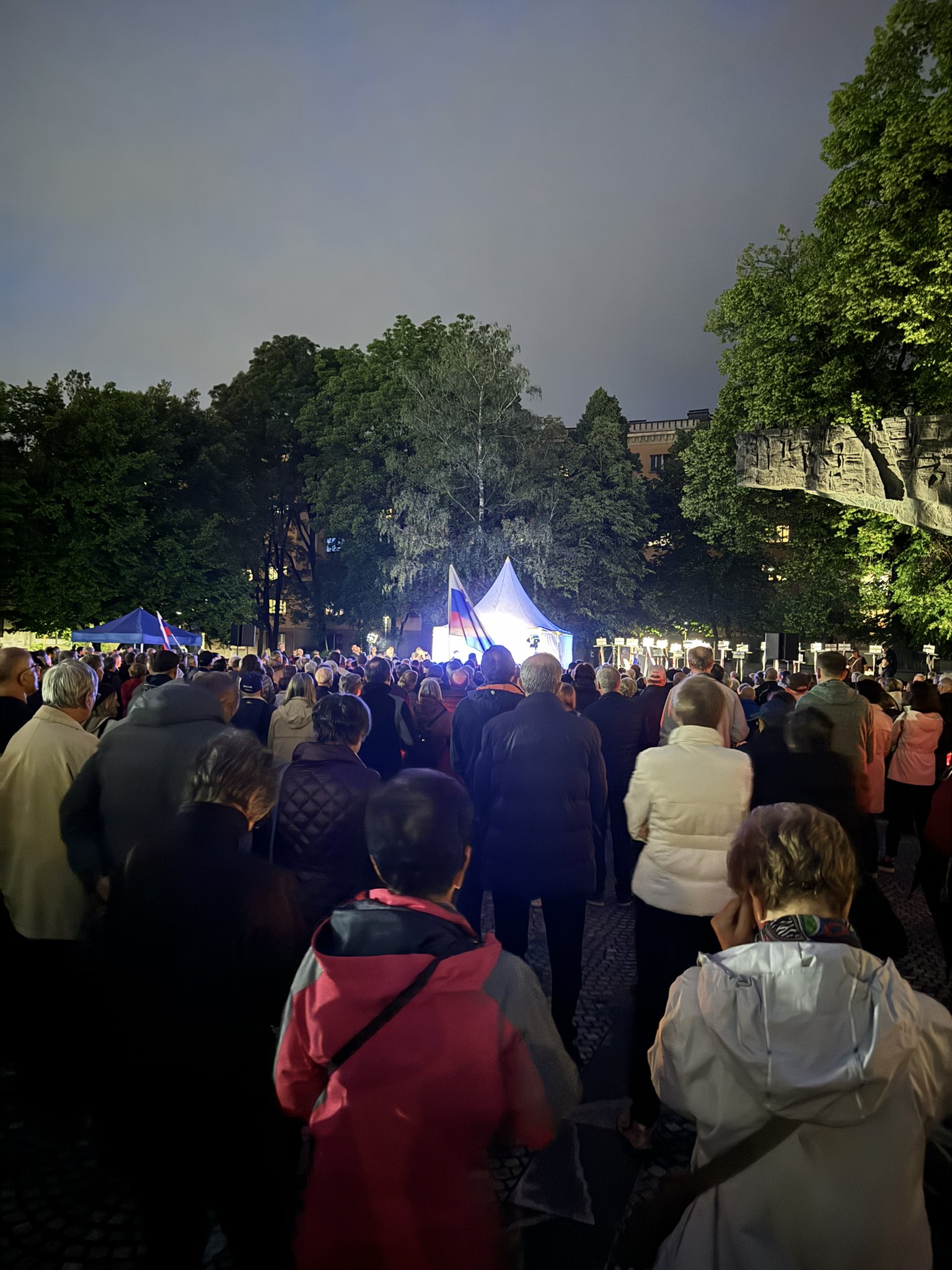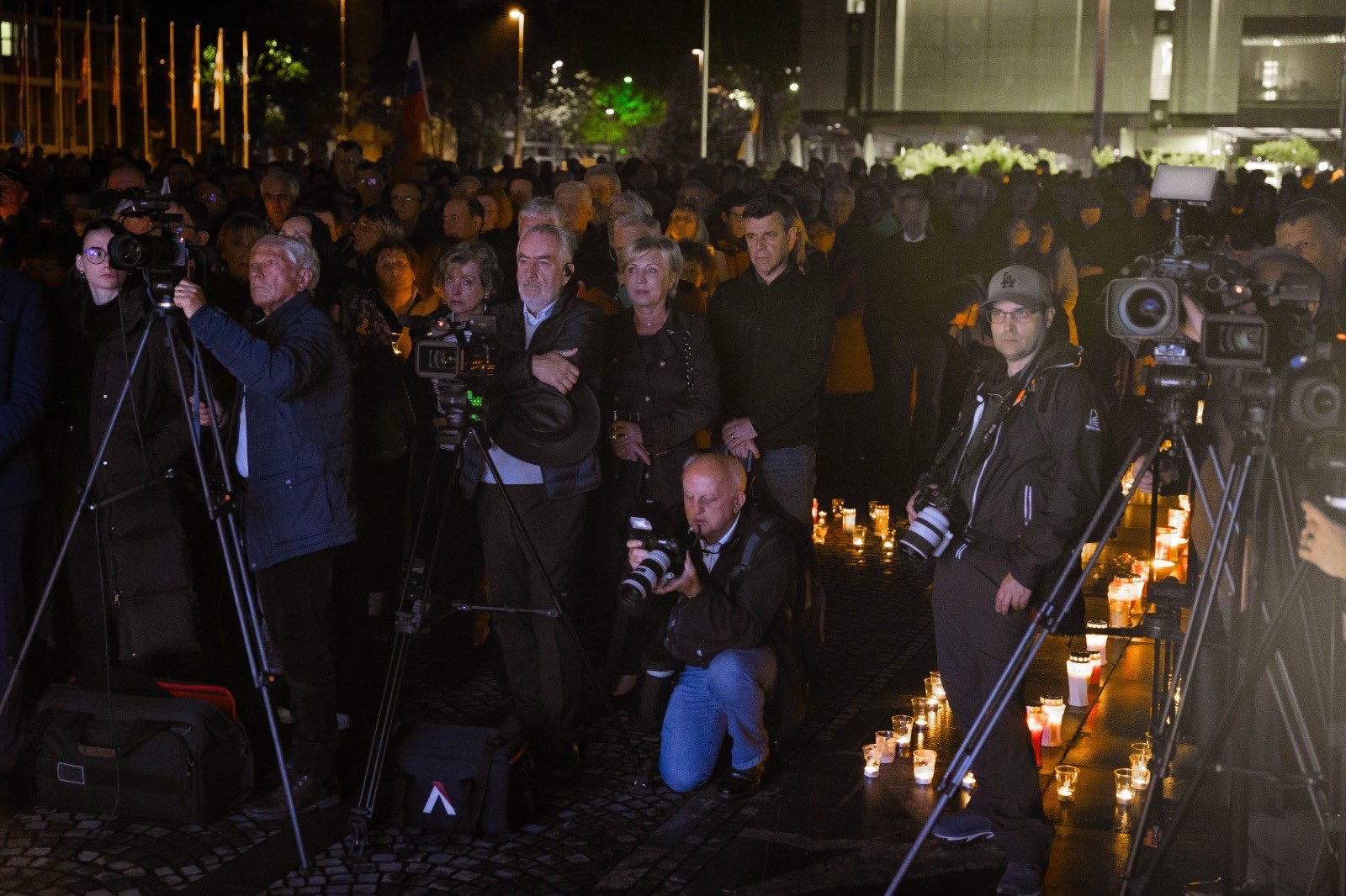 Sinoči, ob 21. uri, so se po celi Sloveniji oglasili zvonovi. Trg republike so preplavile svečke. Mnogi so sporočili, ker niso mogli priti v Ljubljano, so doma prižgali svečke.