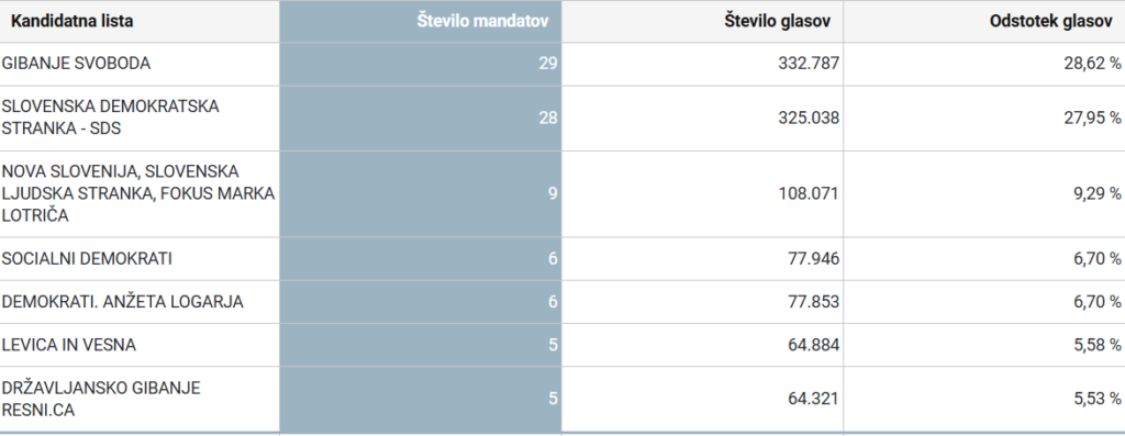 | Gibanje Svoboda | 332.787 | 28,62 | 29 |