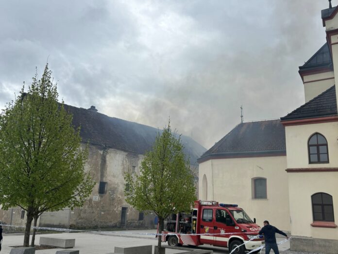 V Mirni Peči je včeraj zagorelo v objektu stare šole, poleg župnijske cerkve. Zagorelo je tudi ostrejše, požar pa so, še preden se je utegnil razširiti na ostale objekte, med drugim bližnjo cerkev, pogasili gasilci prostovoljnih gasilskih društev Mirna Peč, Jablan in Globodol.