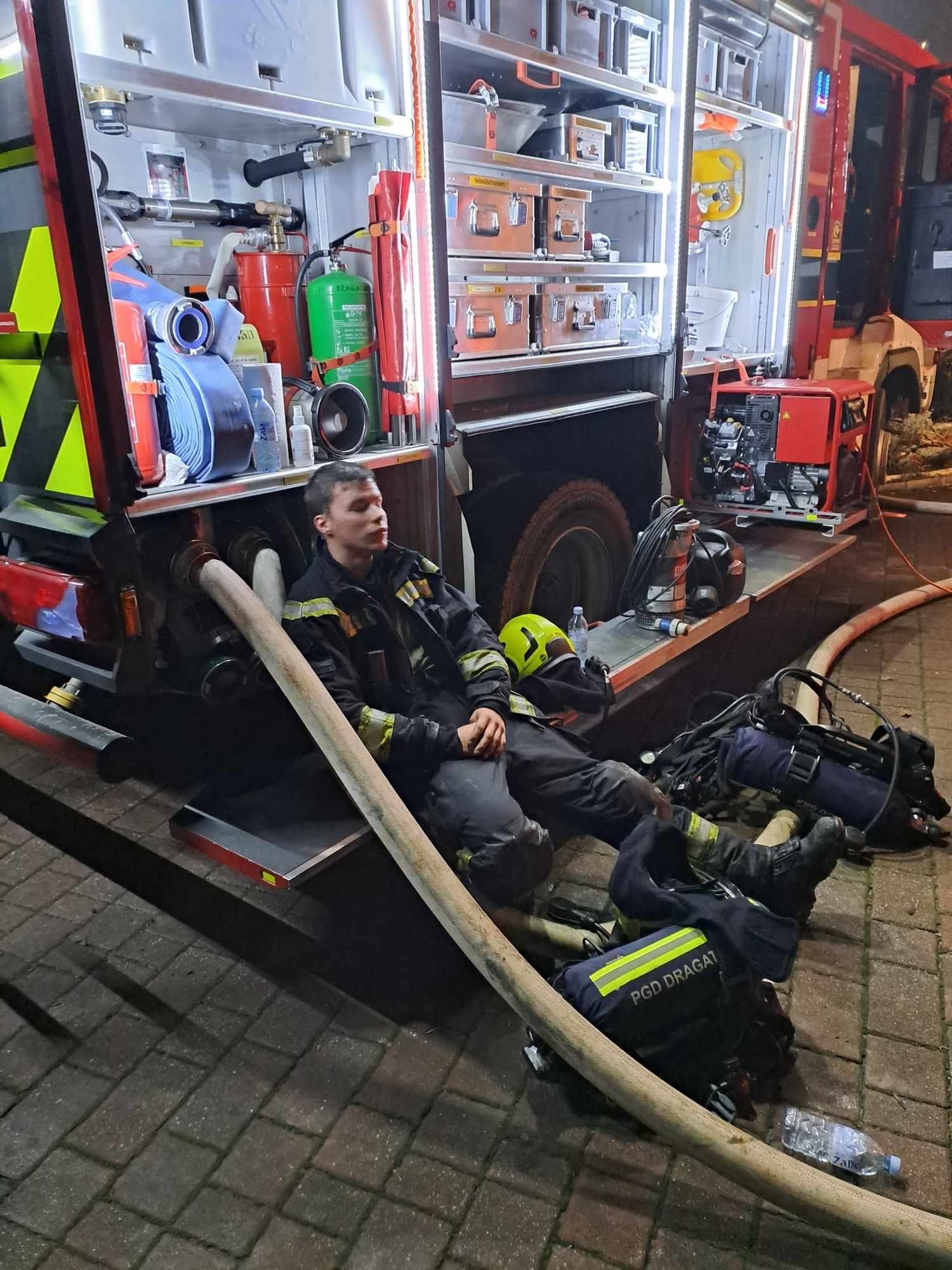 Intervencija gasilcev v Beli krajini je trajala več ur, gasilci so na zaščitnih oblačilih imeli kose stopljenega aluminija. Prve ekipe so se v neznosni vročini plamenov pregrevale. Pomanjkanje kisika in nadčloveški napori so marsikaterega prisilili, da je zaradi onemoglosti za trenutek poiskal hlad, si povrnil moči, nato pa spet v zaščitna oblačila in v boj, so zapisali na spletni strani PGD Dragatuš.