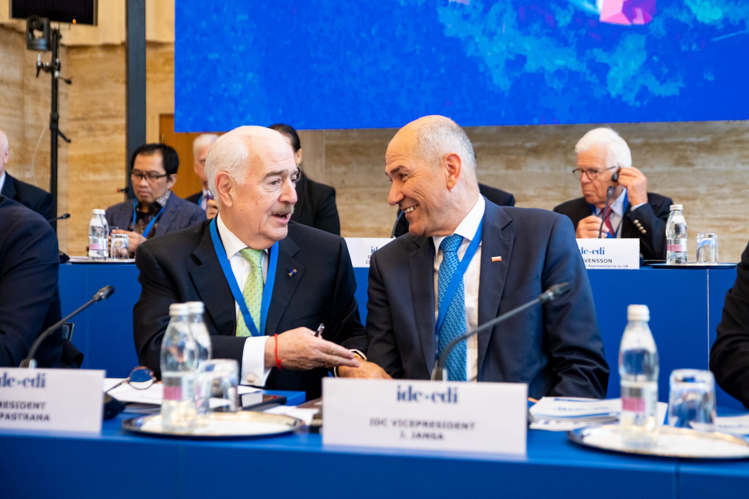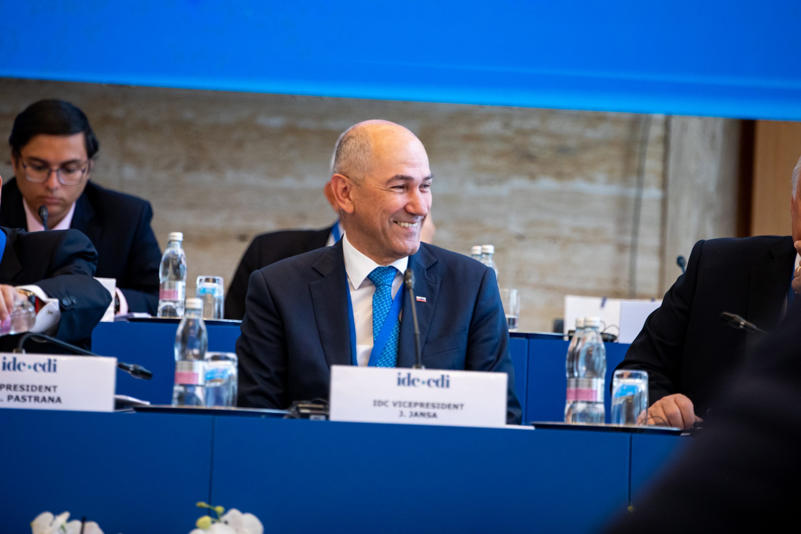 Podpredsednik IDC-CDI Janez Janša pa je po izvršilnem odboru dejal, da je SDS za zasedanje pripravila splošno, nosilno resolucijo, s katero se naslavlja vse tri grožnje. Resolucija je bila na generalni skupščini soglasno sprejeta.