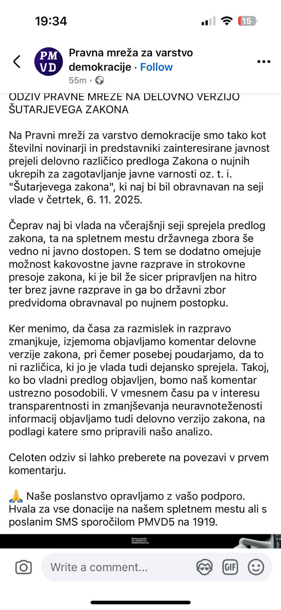 Kljub temu pa Pravna mreža za varstvo demokracije od ljudi še vedno pobira donacije. Včeraj se je tako iniciativa odzvala na t. i. Šutarjev zakon, ob tem pa zaprosila tudi za donacije. »Naše poslanstvo opravljamo z vašo podporo. Hvala za vse donacije …« so zapisali ter podali navodila, kako se jim lahko donira.