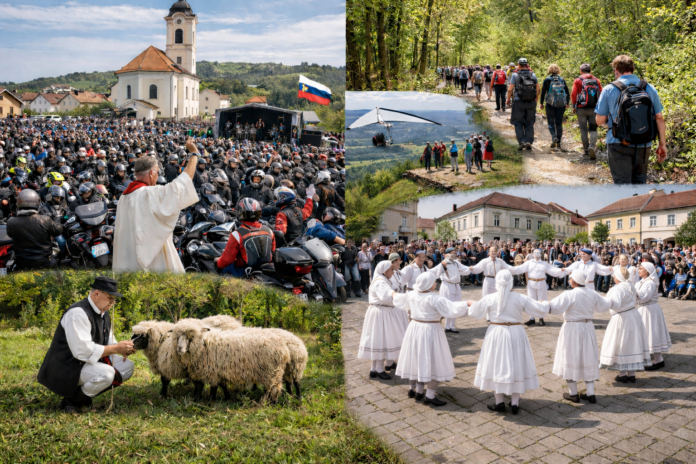 - Mirna Peč: 28. vseslovenski blagoslov motorjev in motoristov. Ena največjih in najbolj priljubljenih prireditev za motoriste v Sloveniji. Pričetek ob 8.00, maša ob 10.00 v cerkvi sv. Kancijana, blagoslov ob 11.00, nato druženje z ansamblom in gostitelji. Pričakujejo več tisoč obiskovalcev iz cele Slovenije in tujine. Primerno za ljubitelje dveh koles, varne vožnje in prazničnega vzdušja.