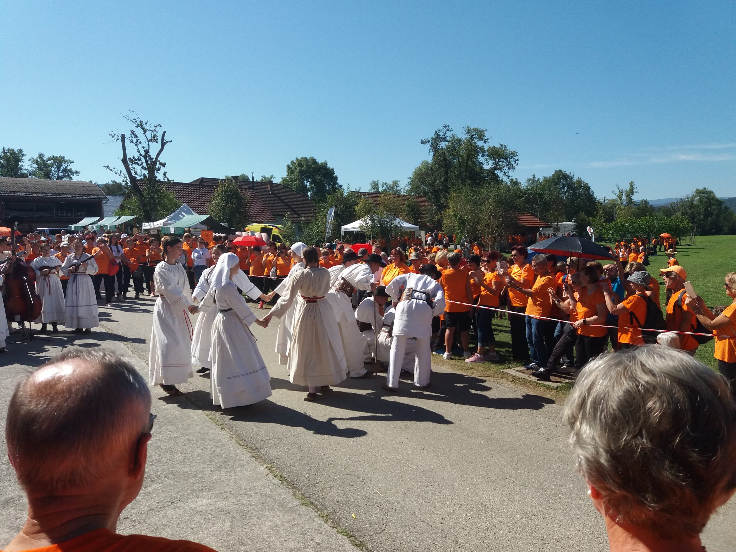 Po vodeni telovadbi so se udeleženci srečanja podali  na Grad Vinica, voden pohod na Žeželj, sprehod po čudoviti poti ob prelepi Kolpi, se učili belokranjskih plesov, spoznavali zelišča  ali pa se z Andražem Purgerjem, vodjo projekta »Dihamo z naravo«, odpravili  do čudovite jase ob Kolpi in se v senci dreves seznanili z vadbo “Dihamo z naravo”. Oranžna barva se je kaj kmalu razlila okoli naokoli po Vinici. Družabno-telovadni dan v idilični Vinici so udeleženci srečanja zaključili prijetno, polni novih vtisov, saj so po vsakem takem srečanju bogatejši za nekaj novih prijateljstev in prijetnih spominov. Čeprav večinoma v tretjem življenjskem obdobju so ti veselo razpoloženi ljudje s svojo karizmo in dobro voljo pustili opazno oranžno sled v tej zeleni dolini, ki jo objema reka Kolpa.