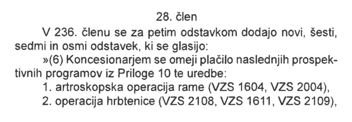 Pred tem je Zavod za zdravstveno zavarovanje Slovenije (ZZZS) izvajalcem v javni mreži, se pravi tudi koncesionarjem, ortopedske posege plačevala po realizaciji. Številni bolniki so zato do posega prišli prej, kot bi sicer, tudi mesece in leta. Veliko teh posegov so opravili koncesionarji.