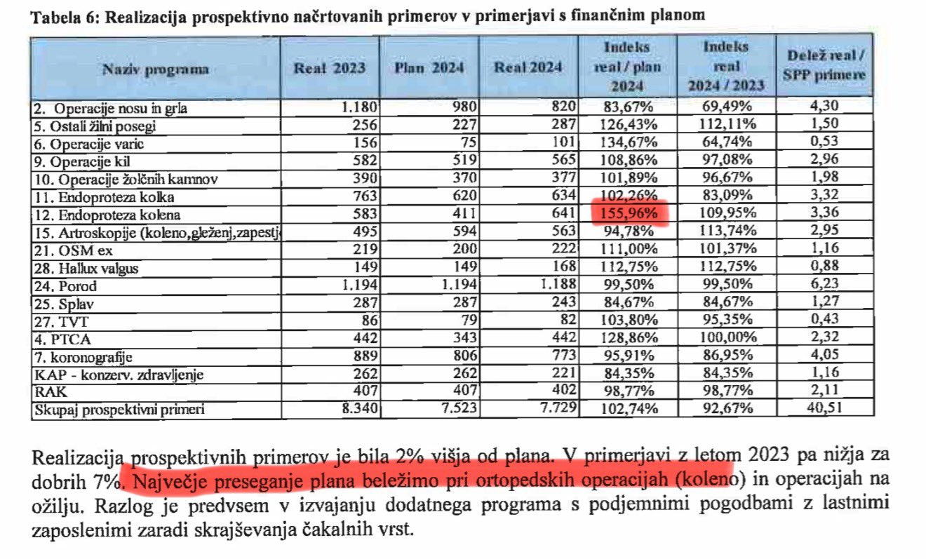 Dr. Kavčič je vse očitke zavrnil. Da ima prav, pokažejo tudi podatki zadnje objavljenega letnega poročila SB Novo mesto. To namreč pokaže, da so v bolnišnici tako za operacije kot za ambulantne preglede na oddelku ortopedija v povprečju presegali planiran program. Ob tabeli vseh operativnih posegov pa je zapisano celo naslednje: “Največje preseganja plana beležimo pri ortopedskih operacijah (koleno).” Plan realizacije je bil presežen tudi v ambulantnem delu.