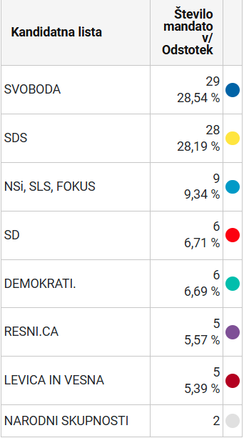- SDS: 28,19 % in 28 poslancev