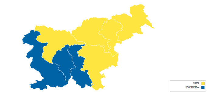 - Svoboda je zmagala v 3 volilnih enotah: Ljubljana – Bežigrad, Ljubljana – Center in Postojna.