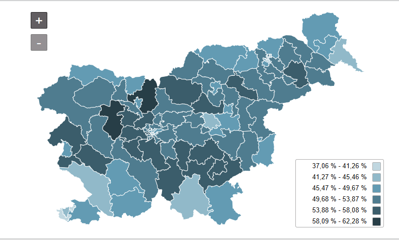 - Volilna enota z najnižjo udeležbo v Sloveniji je Postojna: 48,06 %