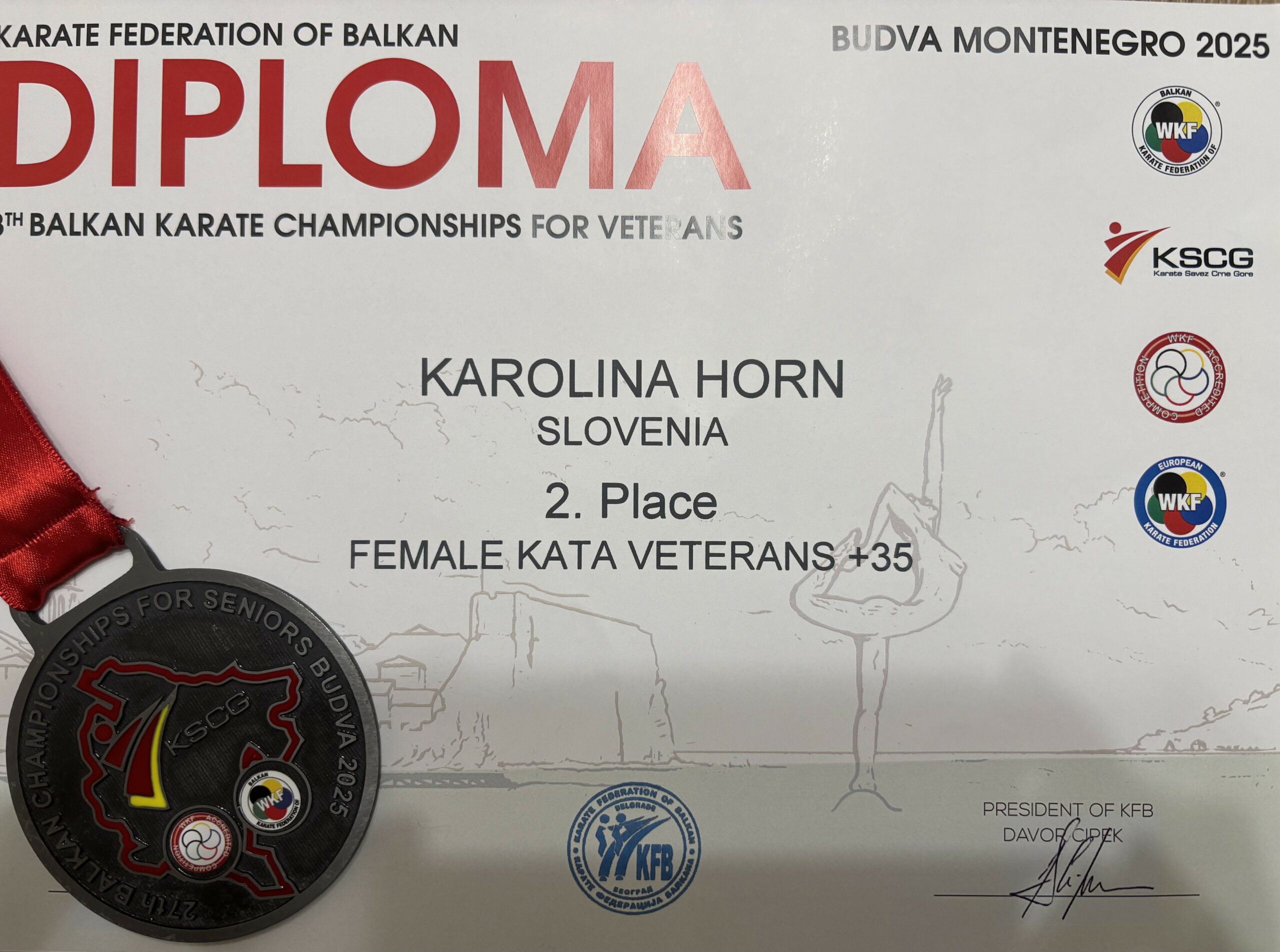 Karolina Horn je nastopala v kategoriji kate posamezno, veteranke +35 let, ter z osvojeno srebrno medaljo osvojila tudi najvišjo osvojeno medaljo na tem balkanskem prvenstvu vseh predstavnikov Karate zveze Slovenije.