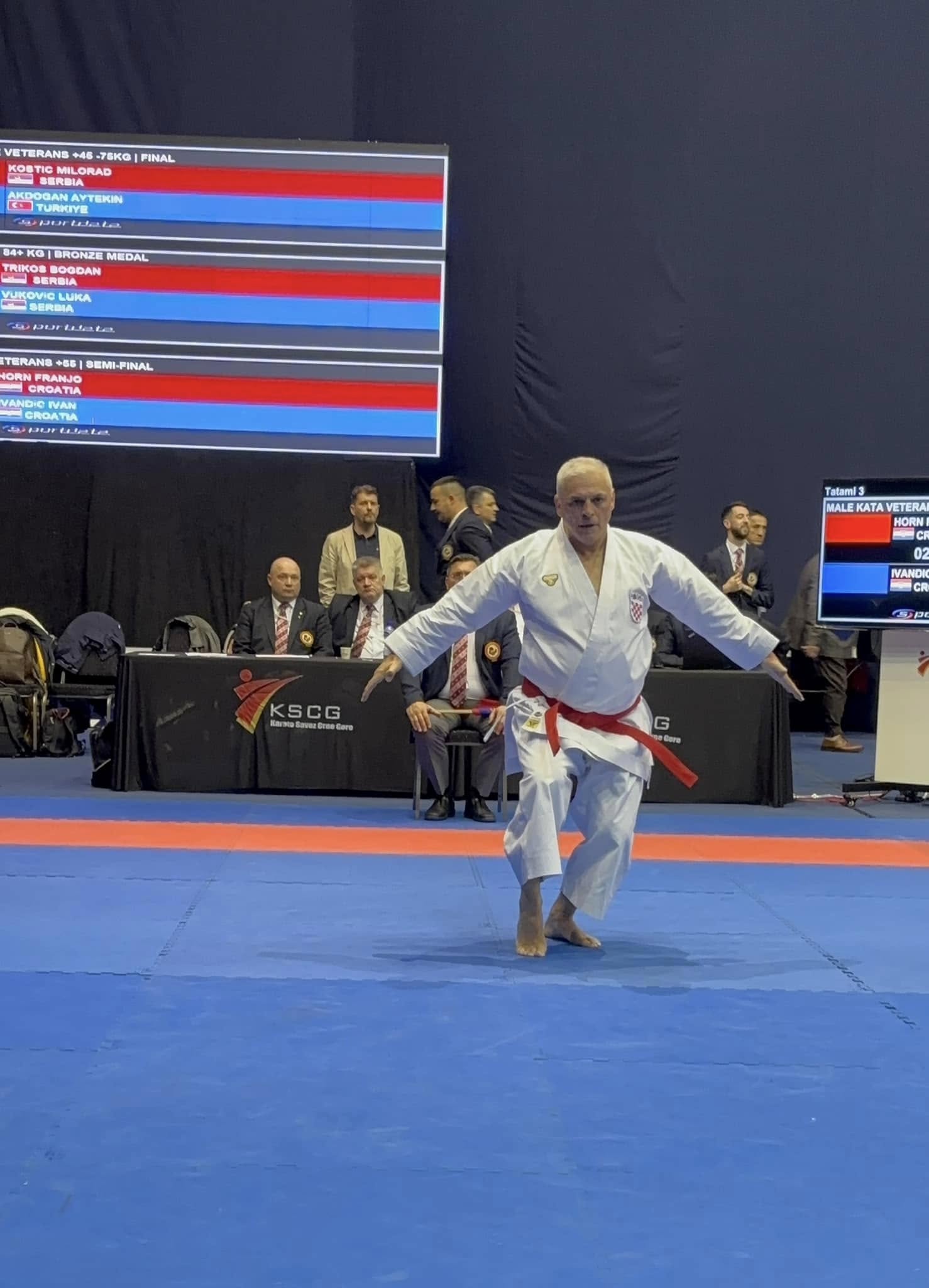 Franjo Horn je v močni konkurenci kategorije kate posamezno, veterani + 55 let prav tako osvojil srebrno medaljo, podelitveni oder pa si je delil še z dvema reprezentančnima kolegama iz Hrvaške.