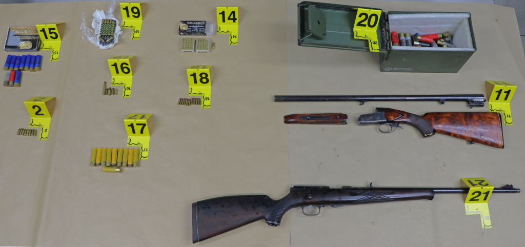 Novomeški kriminalisti so med hišnima preiskavama na območju naselij Brezje in Trška Gora pri Krškem našli in zasegli avtomatsko puško, dve lovski puški, dve bombi, dva nabojnika, 278 nabojev in dve ukradeni registrski tablici, so danes sporočili s Policijske uprave (PU) Novo mesto.